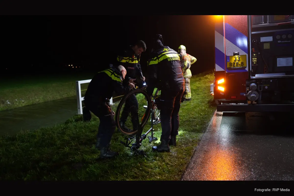 De brandweer heeft doormiddel van duikers en brandweerlieden in waadpakken de sloot doorzocht maar daar niemand aangetroffen. De politie doet onderzoek naar de herkomst van de fiets.