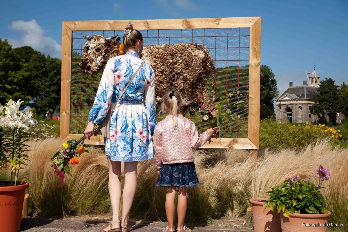 Midden in de tuin is de creatieve beeltenis van de stier van Paulus Potter een bijzondere blikvanger. Dit natuurlijke schilderij, gemaakt van gedroogd gras en bloemen en wol, is tot stand gekomen in samenwerking met Kunst Enkhuizen in het kader van de viering van 400 jaar Paulus Potter. Bezoekers kunnen met dit kunstwerk op de foto met de historische Koepoort op de achtergrond.